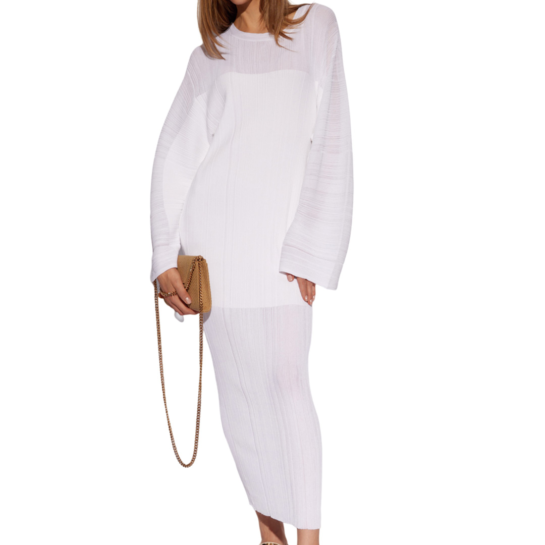 • STELLA McCARTNEY ステラマッカートニー ファインリブ ドロップショルダー ミディドレス