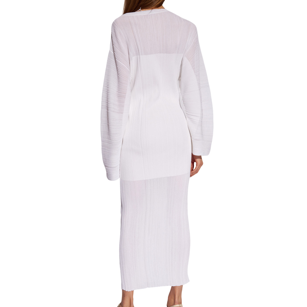 リブニット特有の立体感と伸縮性のある素材が、女性のボディラインを上品に表現してくれるワンピース。