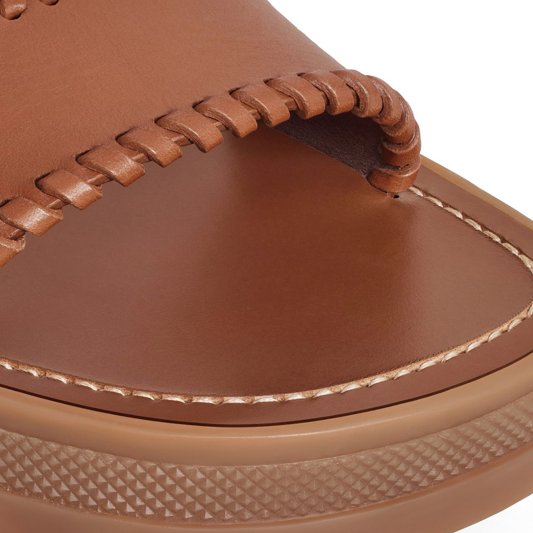 トリオンフのエンボスロゴに手編みのディティールがアクセントになったクリアトリオンフサンダル。