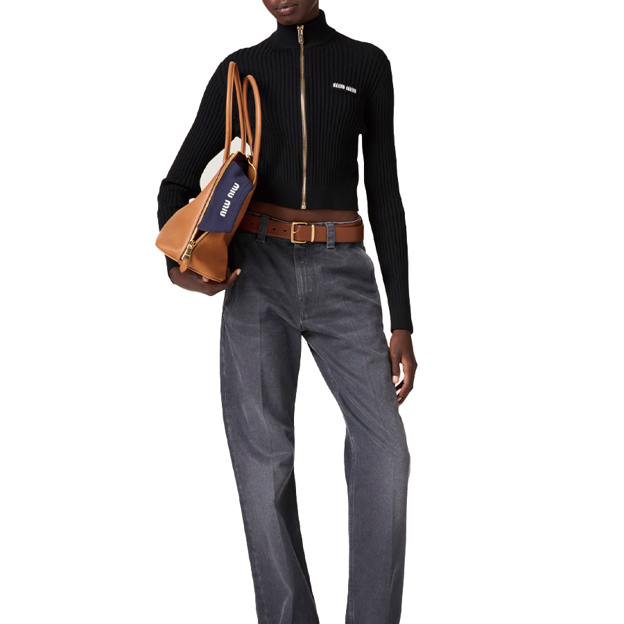 • MIUMIU ミュウミュウ ロゴディテール ジップアップ ニットカーディガン