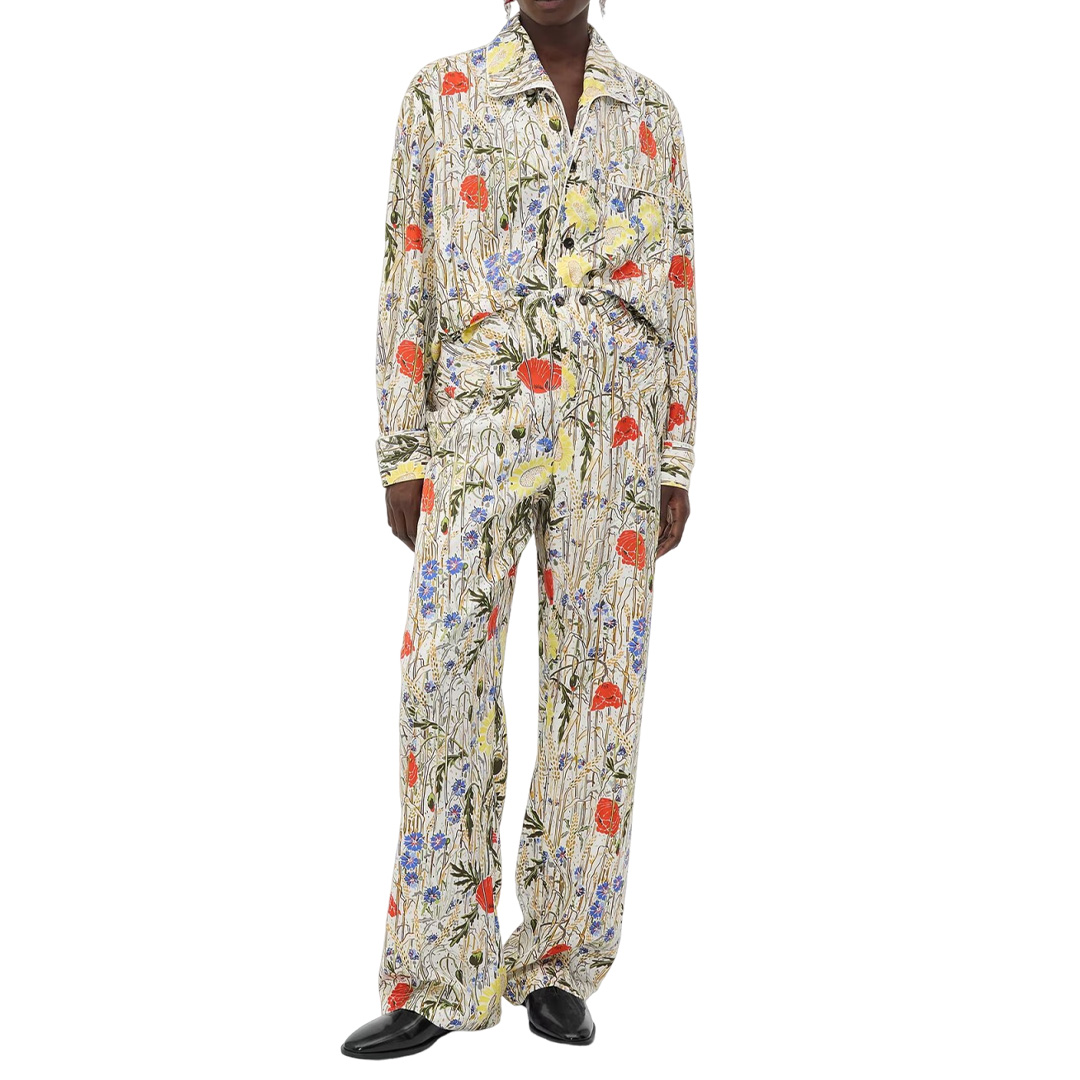 SAINT LAURENT サンローラン フローラル プリント ワンショルダー ミディドレス