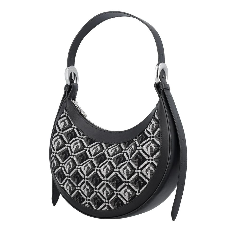 ブランドアイコニックの三日月がモチーフになったシルバーバックルが特徴的なショルダーバッグ。