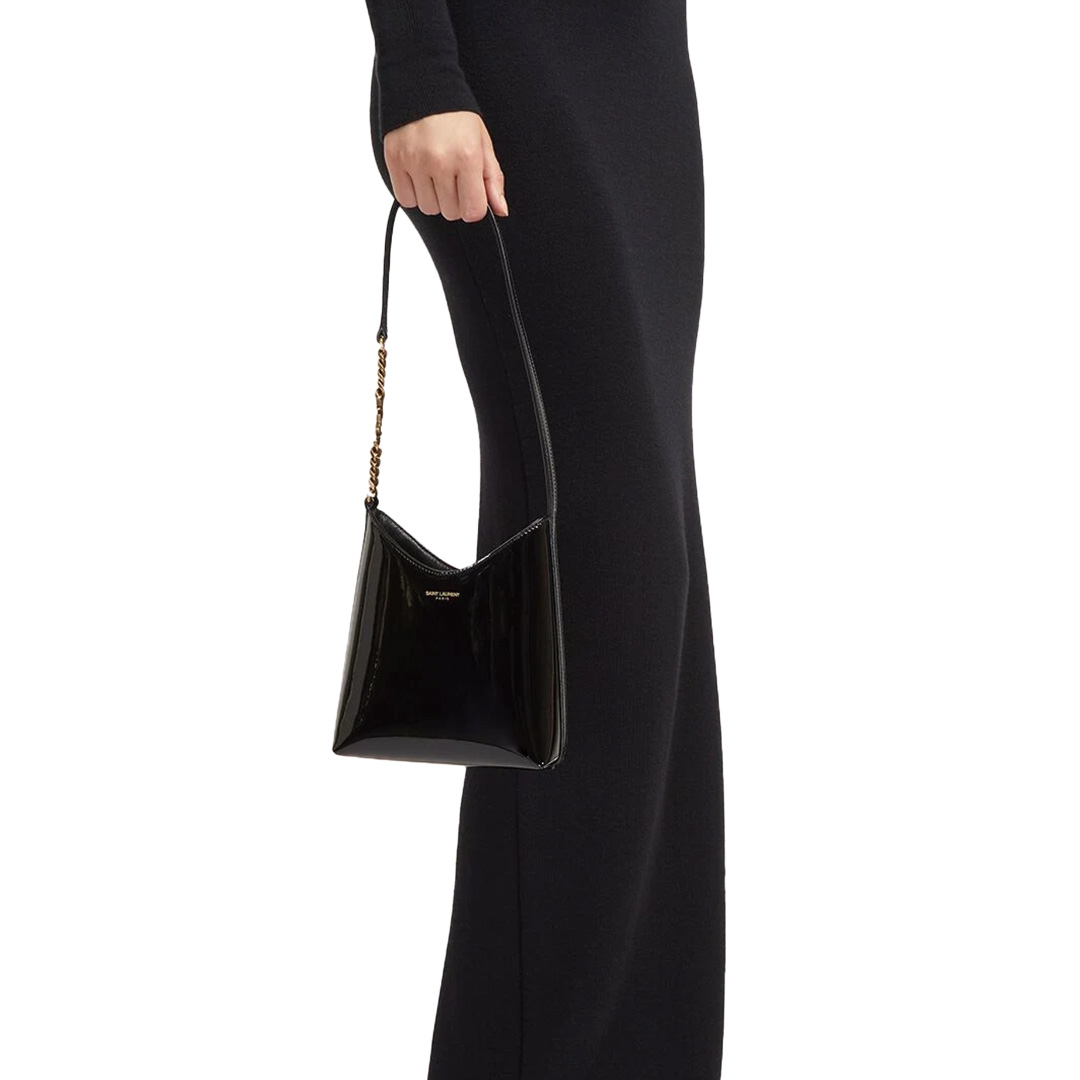 エンボス加工されたSAINT LAURENTパリシグネチャーをあしらったホーボーバッグ。
