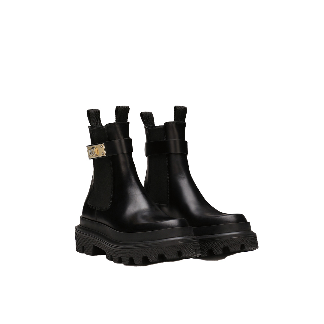 サイドゴアの”DG"メタルが装飾されたチェルシーブーツ。