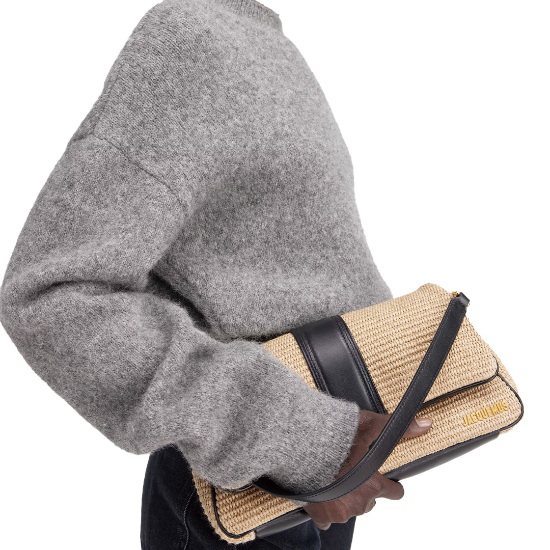 LE BAMBIMOUショルダーバッグは、ラフィアとレザーを使用したデザインです。