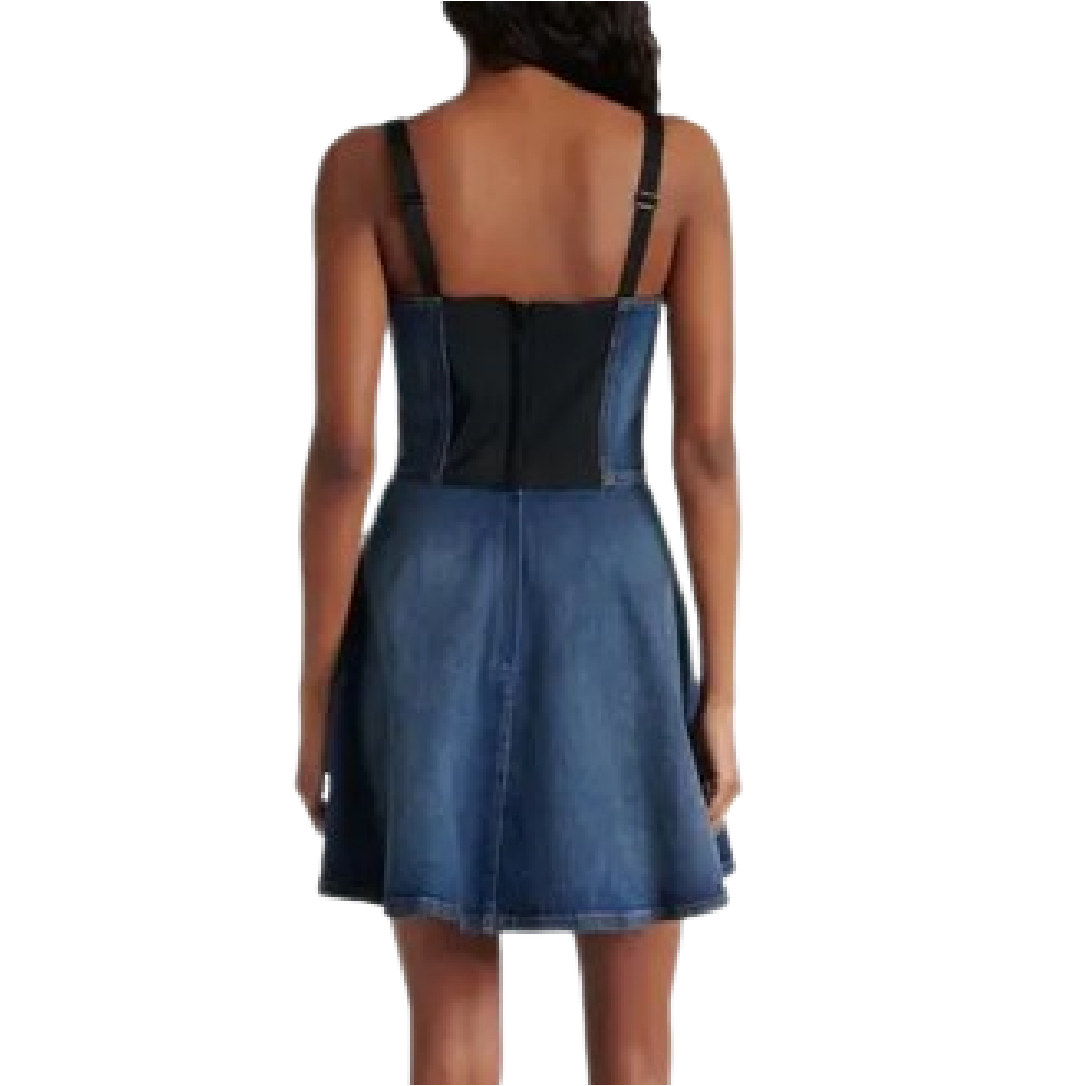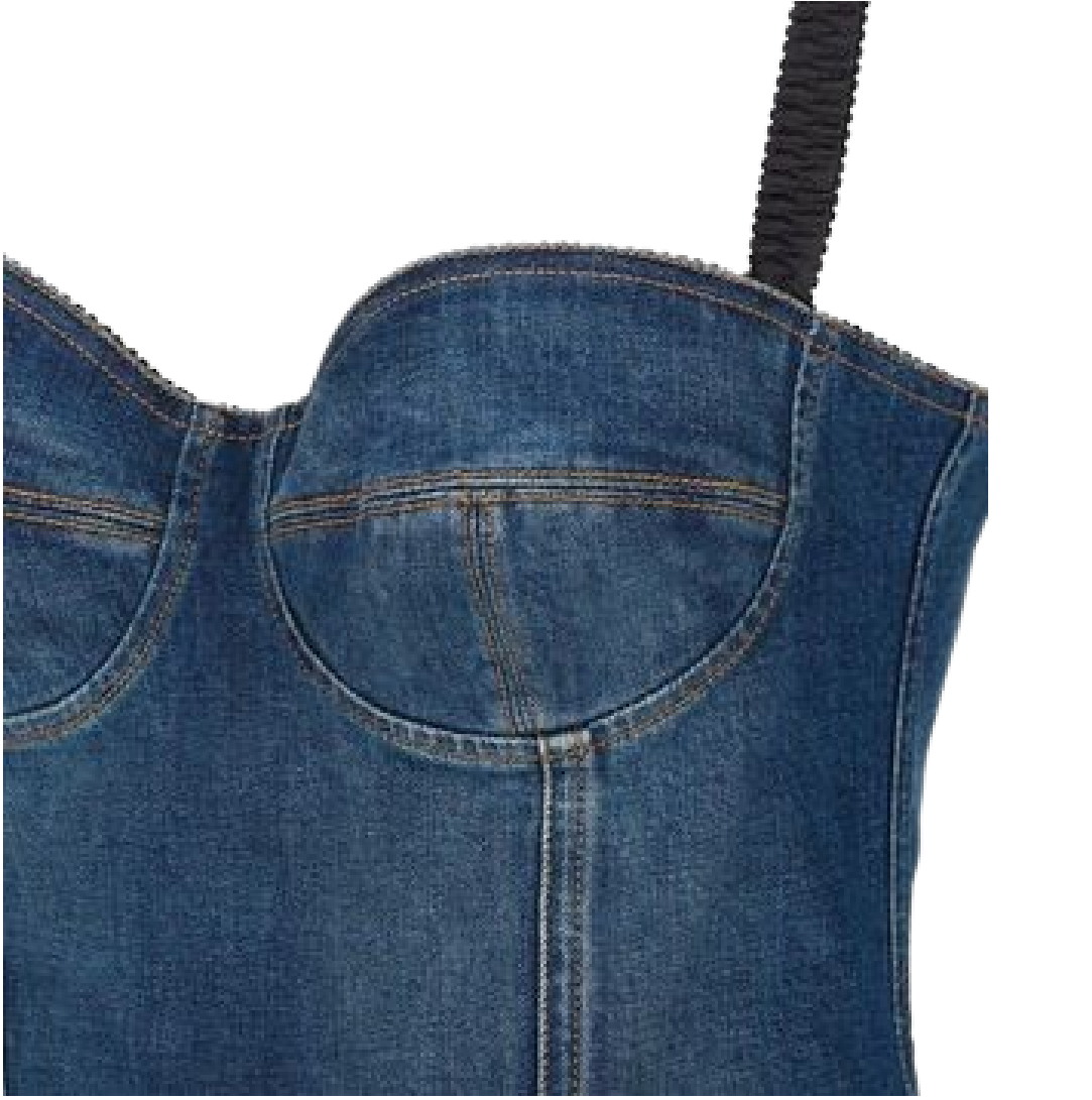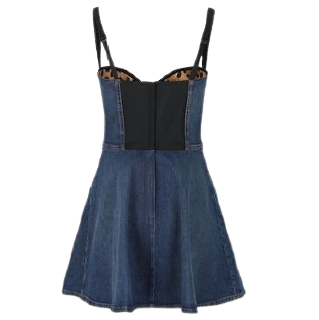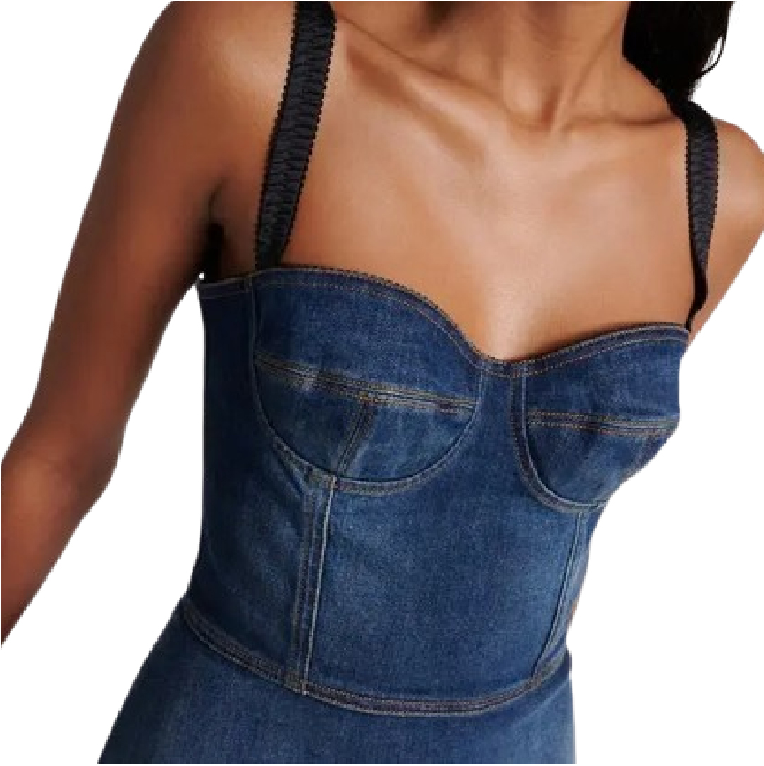 コットンのデニム生地を使用したショート丈のビスチェワンピース。