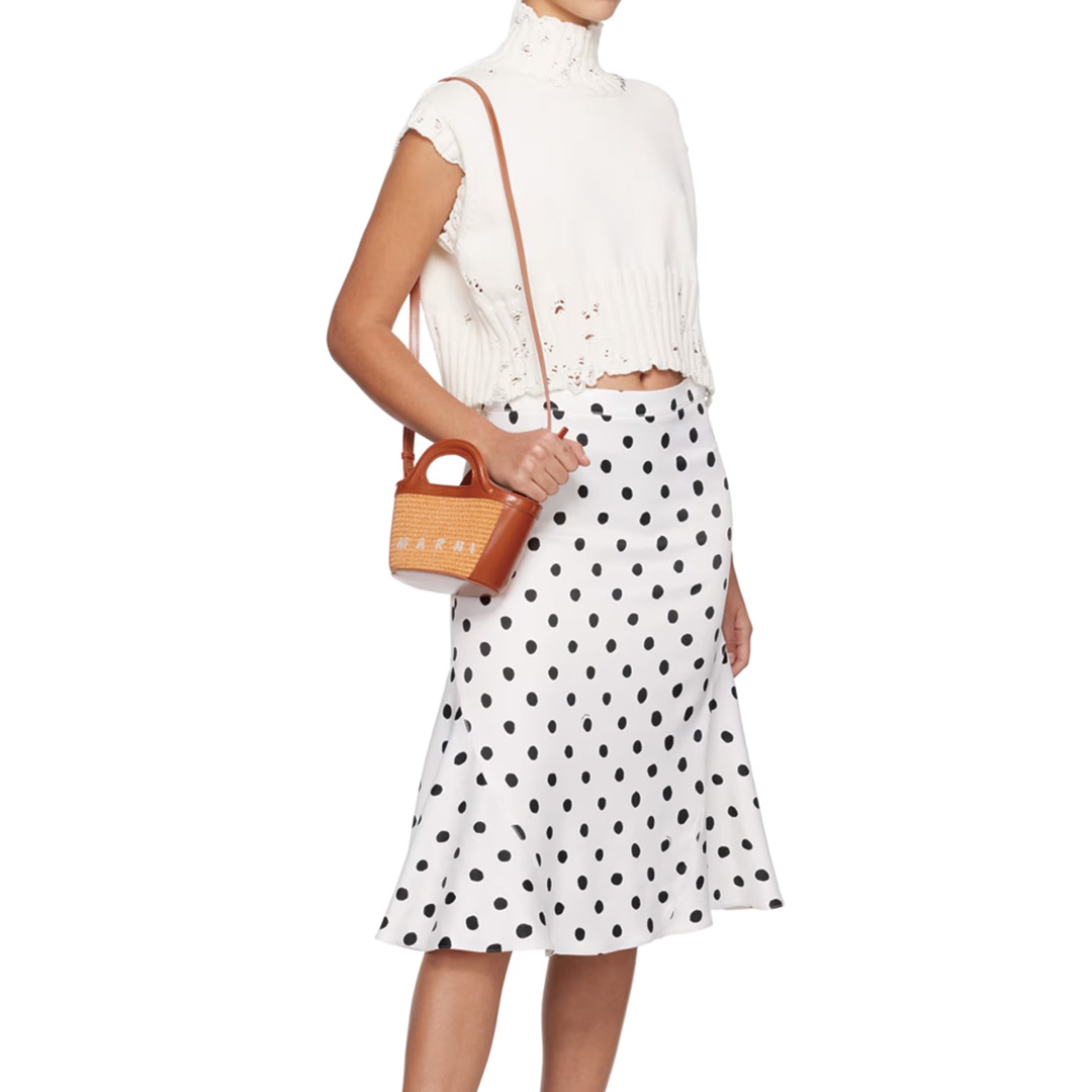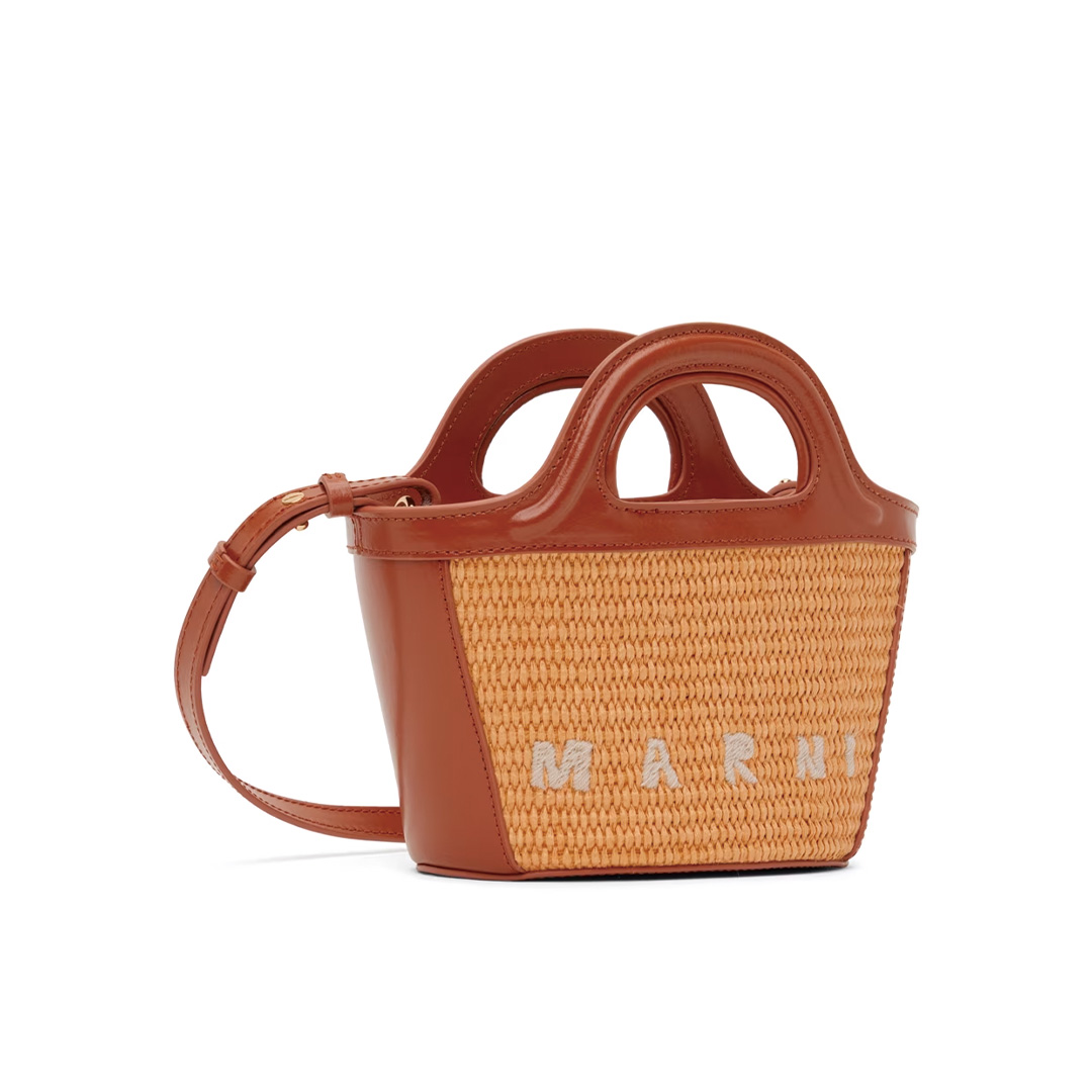 ラフィア素材を使用した涼し気な印象のMARNIトロピカリアマイクロトートバッグ。