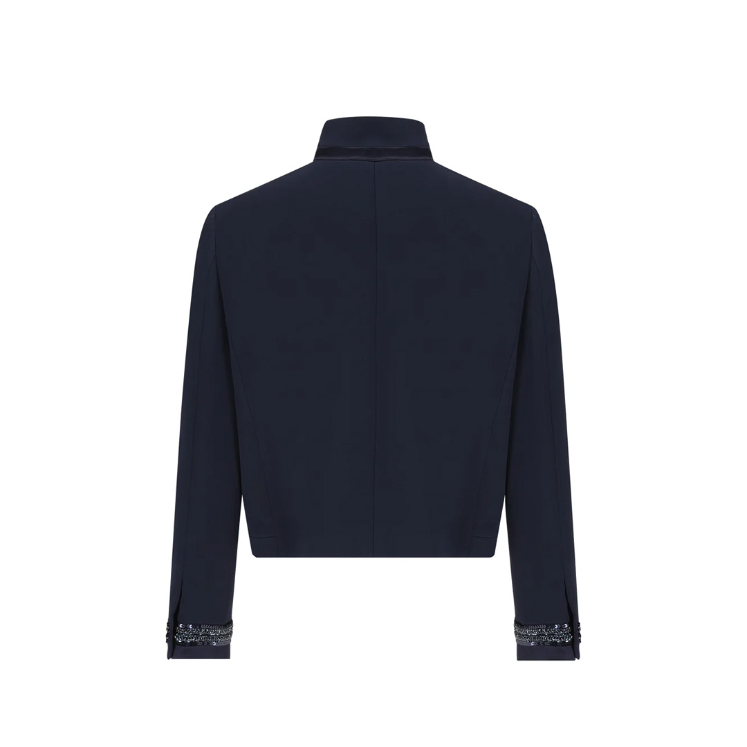 アップターンのラペルカラーとサイドポケットをあしらったカクテルジャケット。