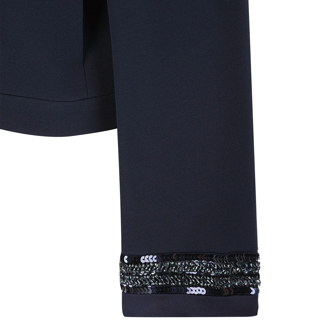 袖口に同色のスパンコールの刺繍をあしらい煌びやかな印象に。
