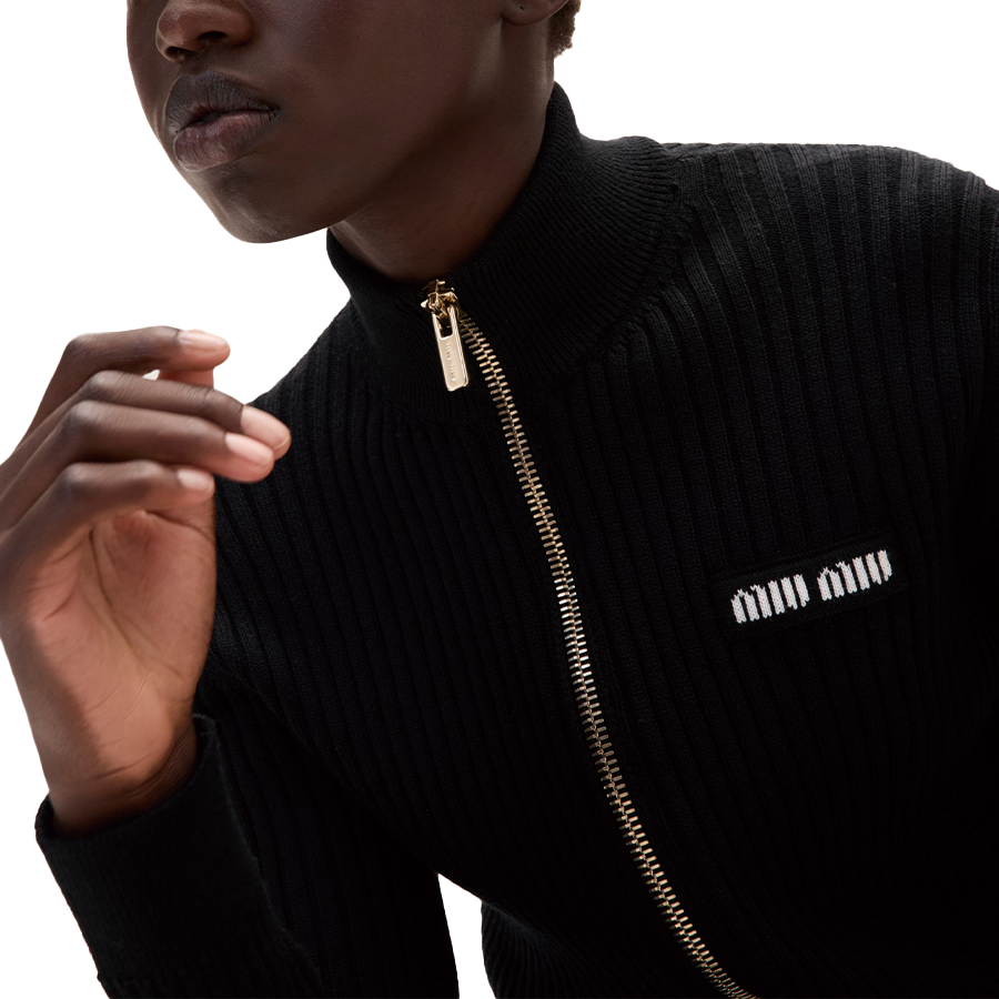 • MIUMIU ミュウミュウ ロゴディテール ジップアップ ニットカーディガン