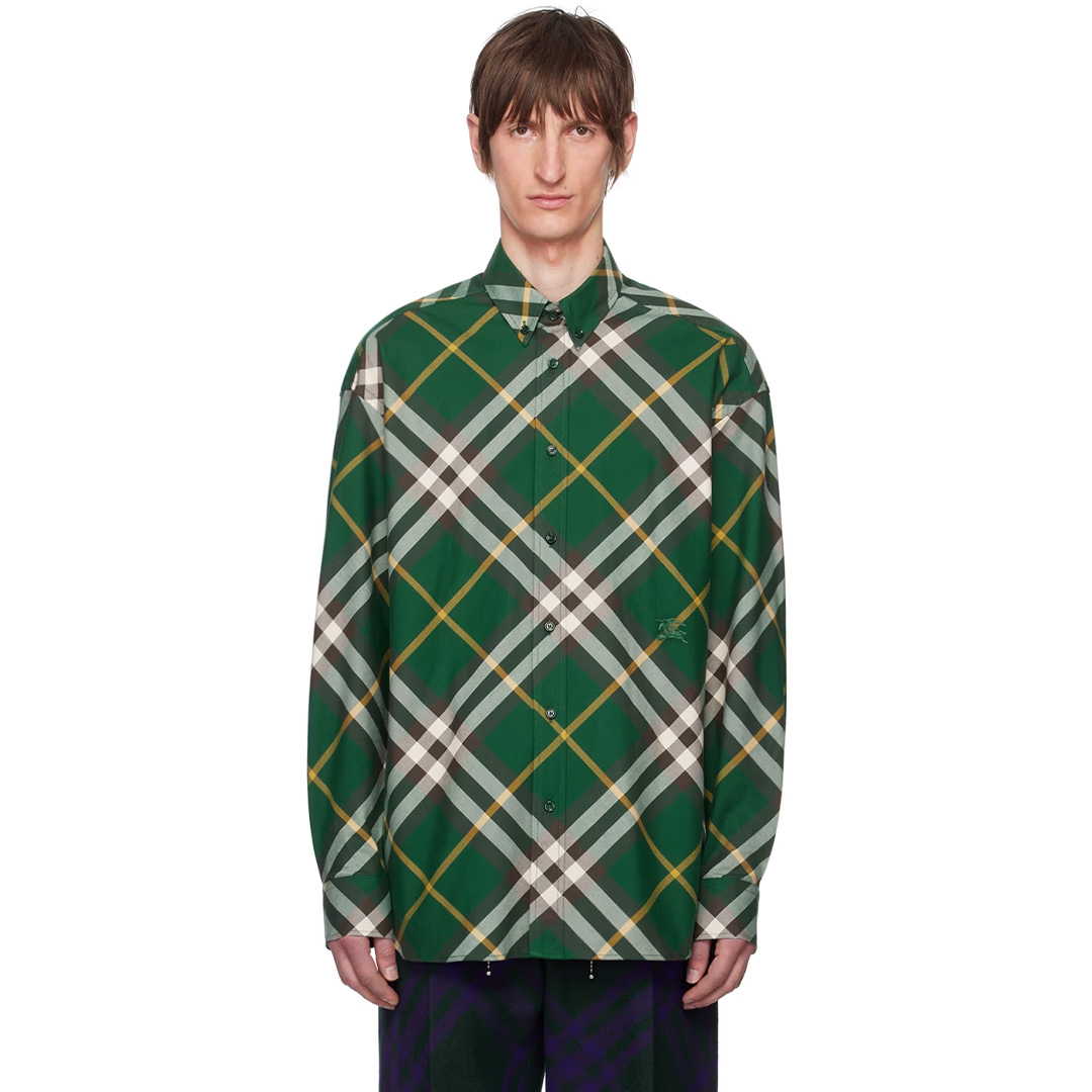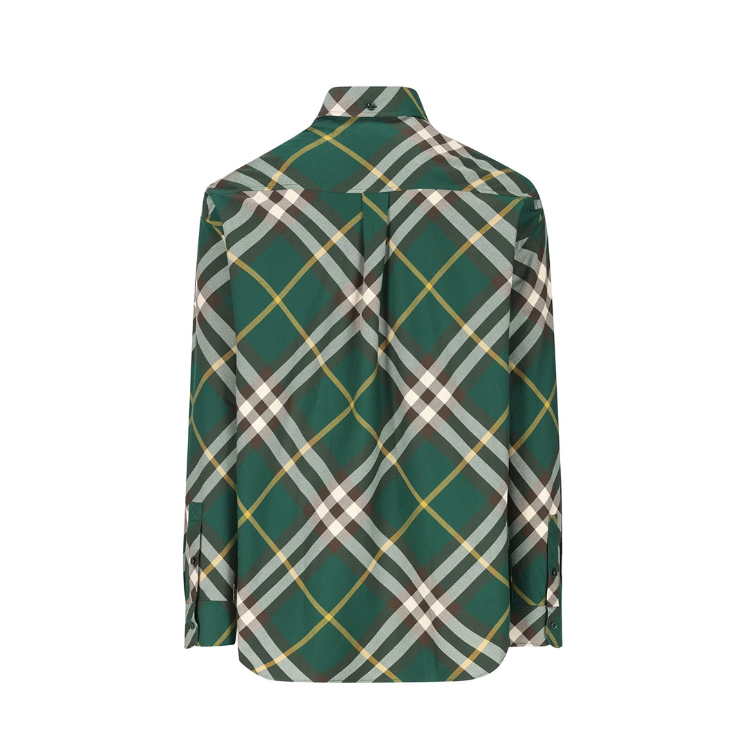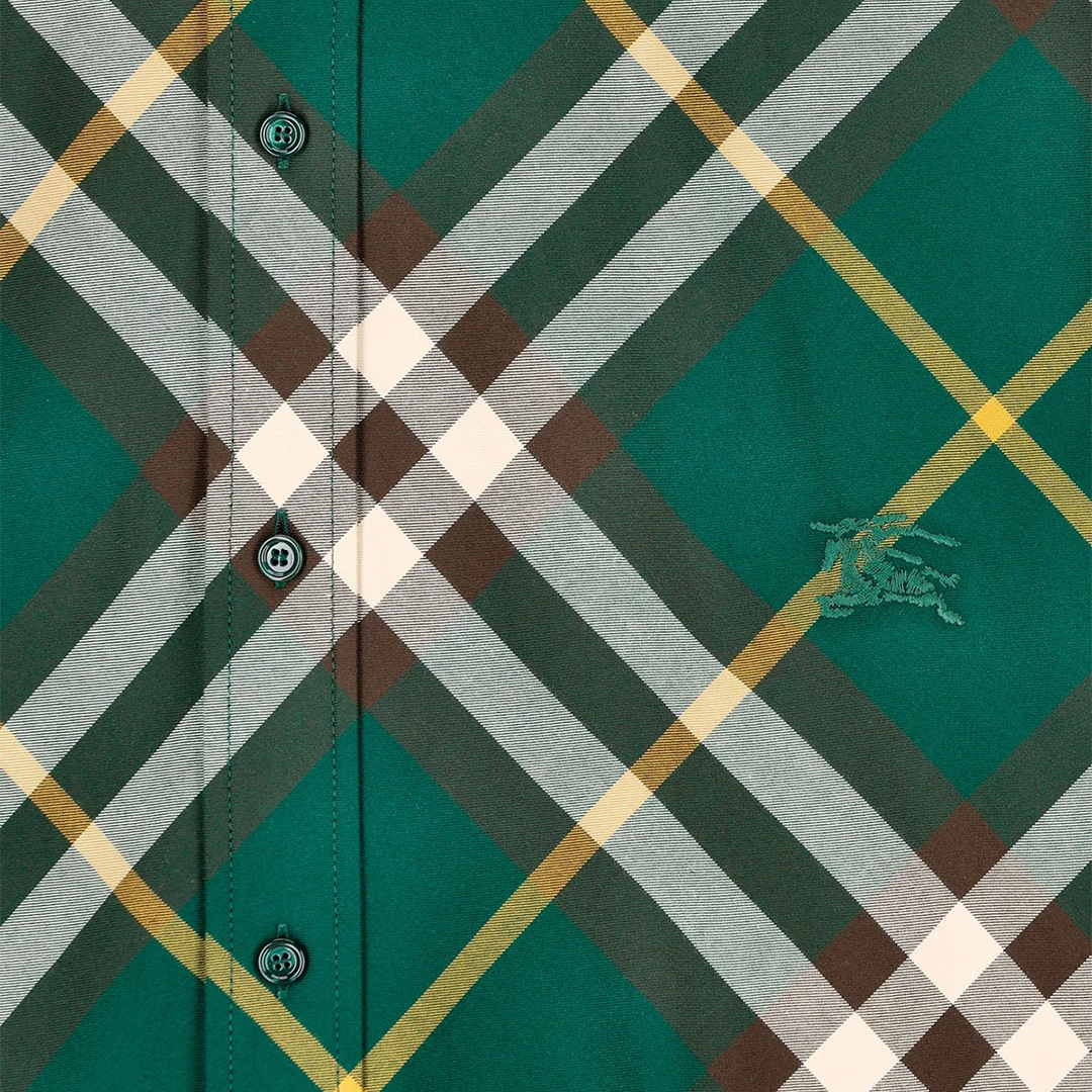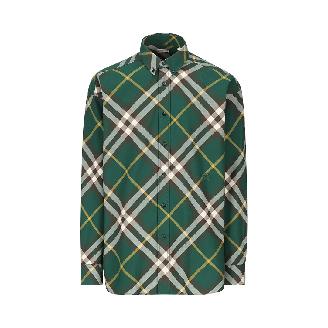 バーバリーチェックのコットンツイルで仕立てたシャツ。