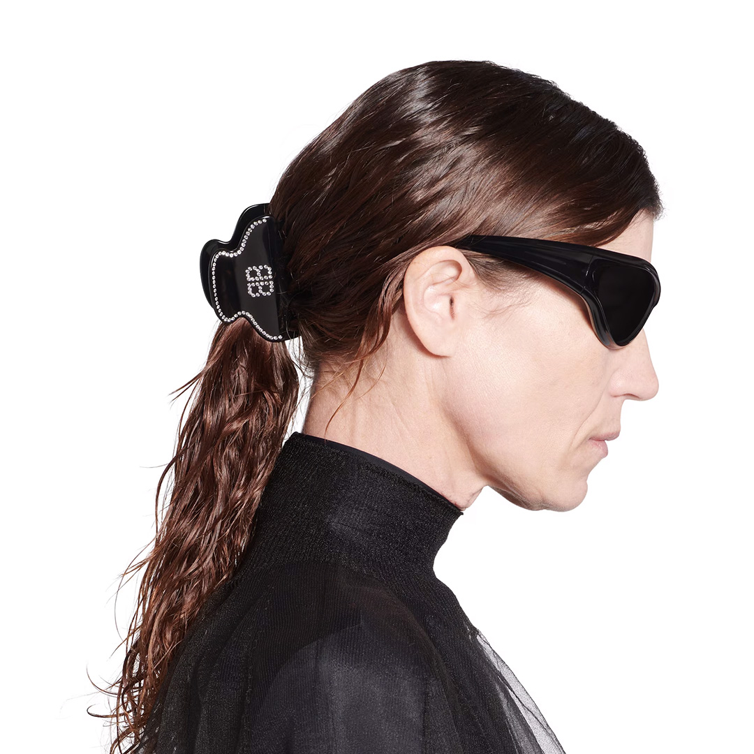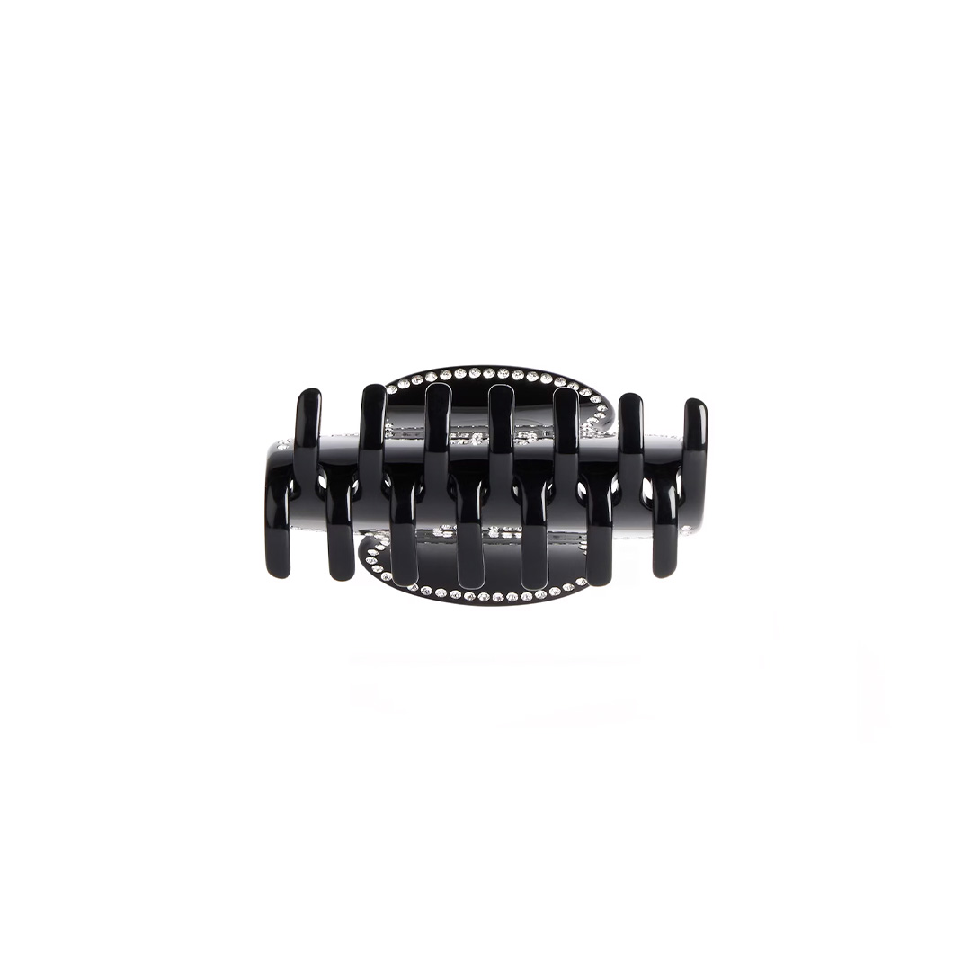 アイコニックなBBロゴをラインストーンで表現した、ブラックのヘアクリップです。