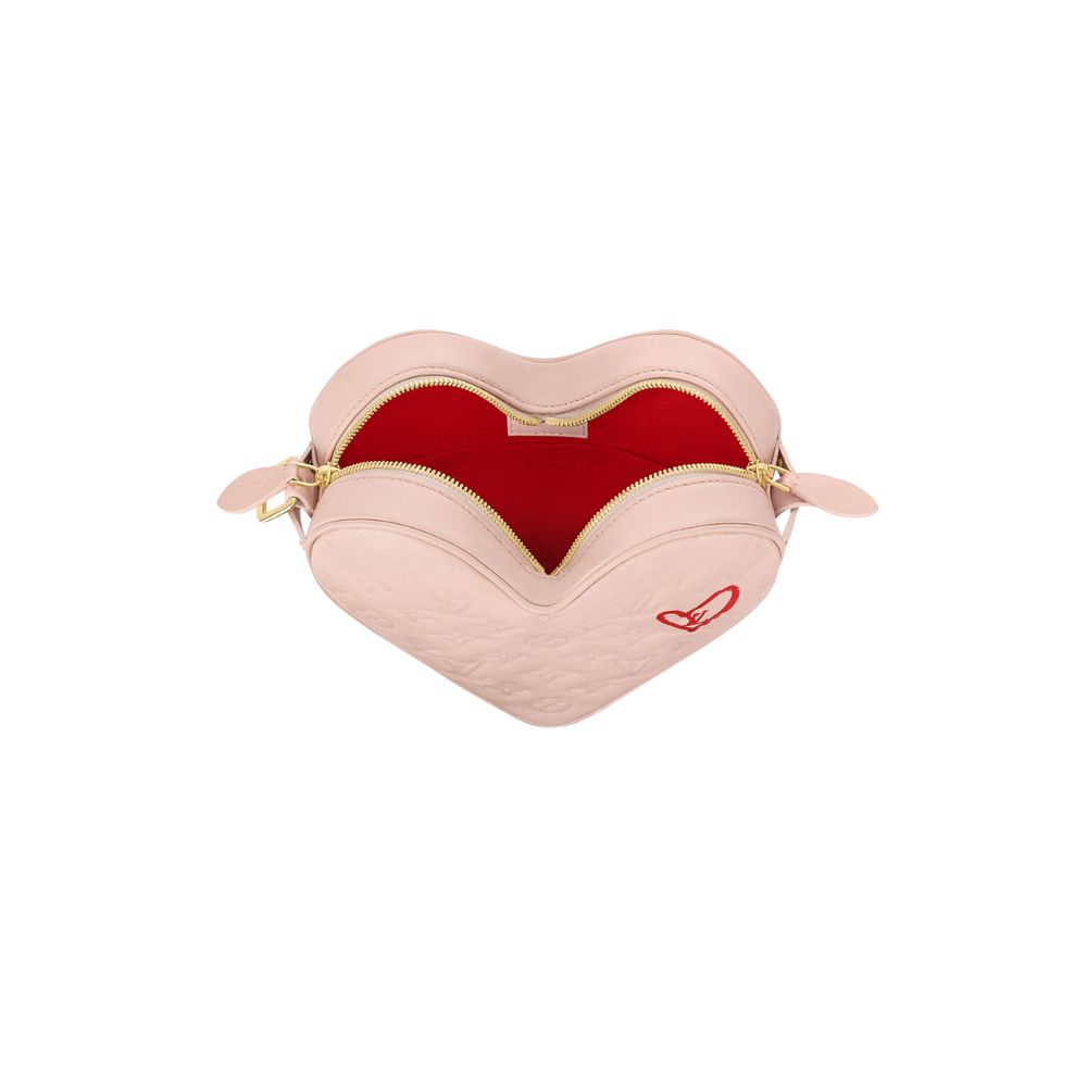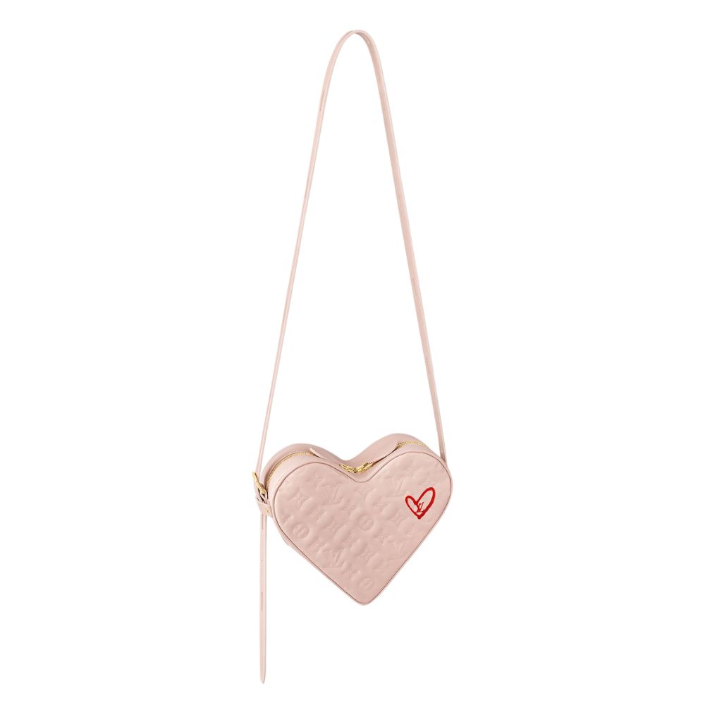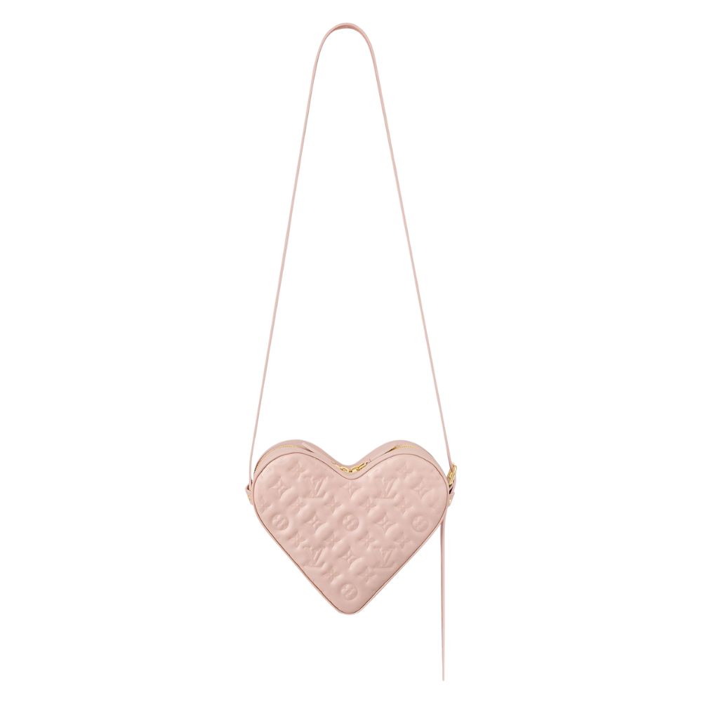 ハート型のサック クール ショルダーバッグは、モノグラム パターンがエンボス加工されておりふっくらとしたフォルムが可愛らしいアイテム。