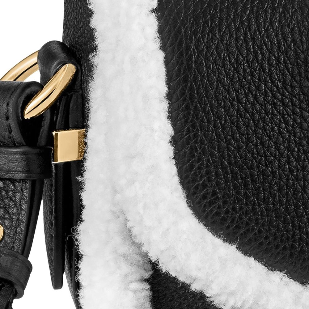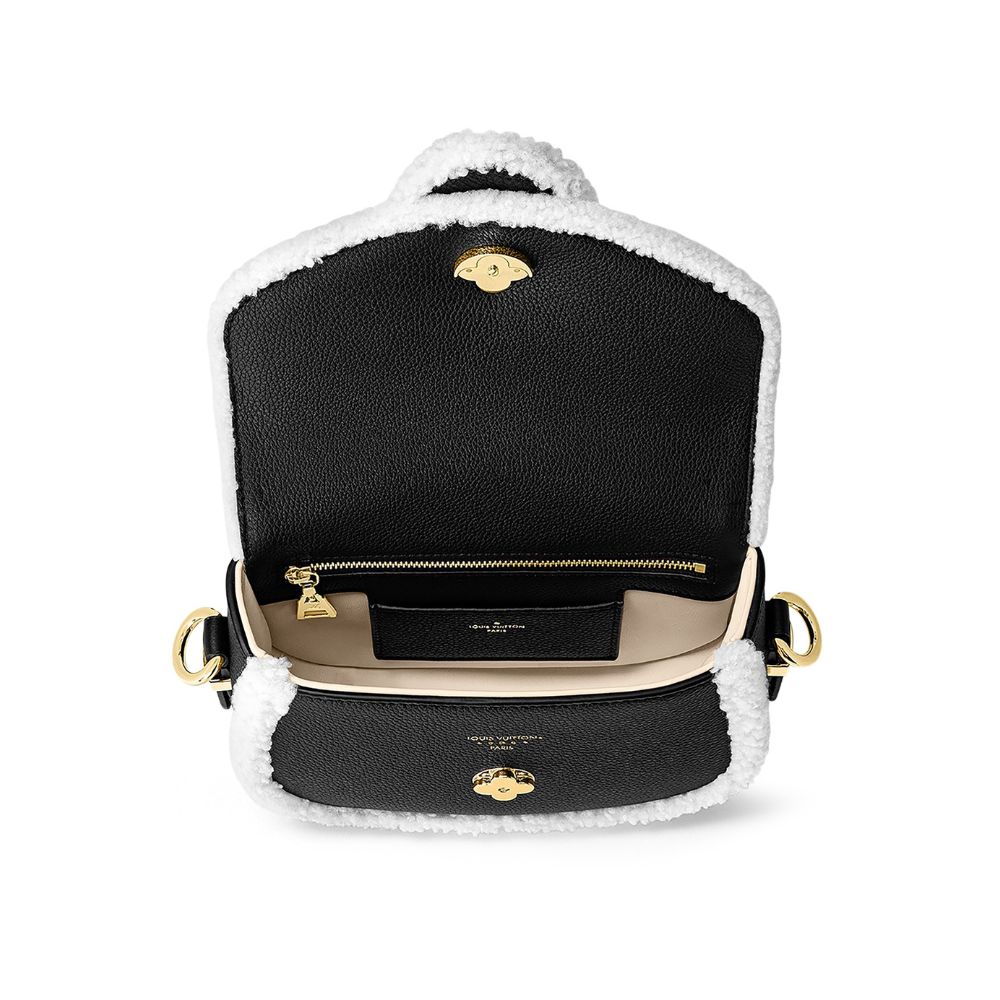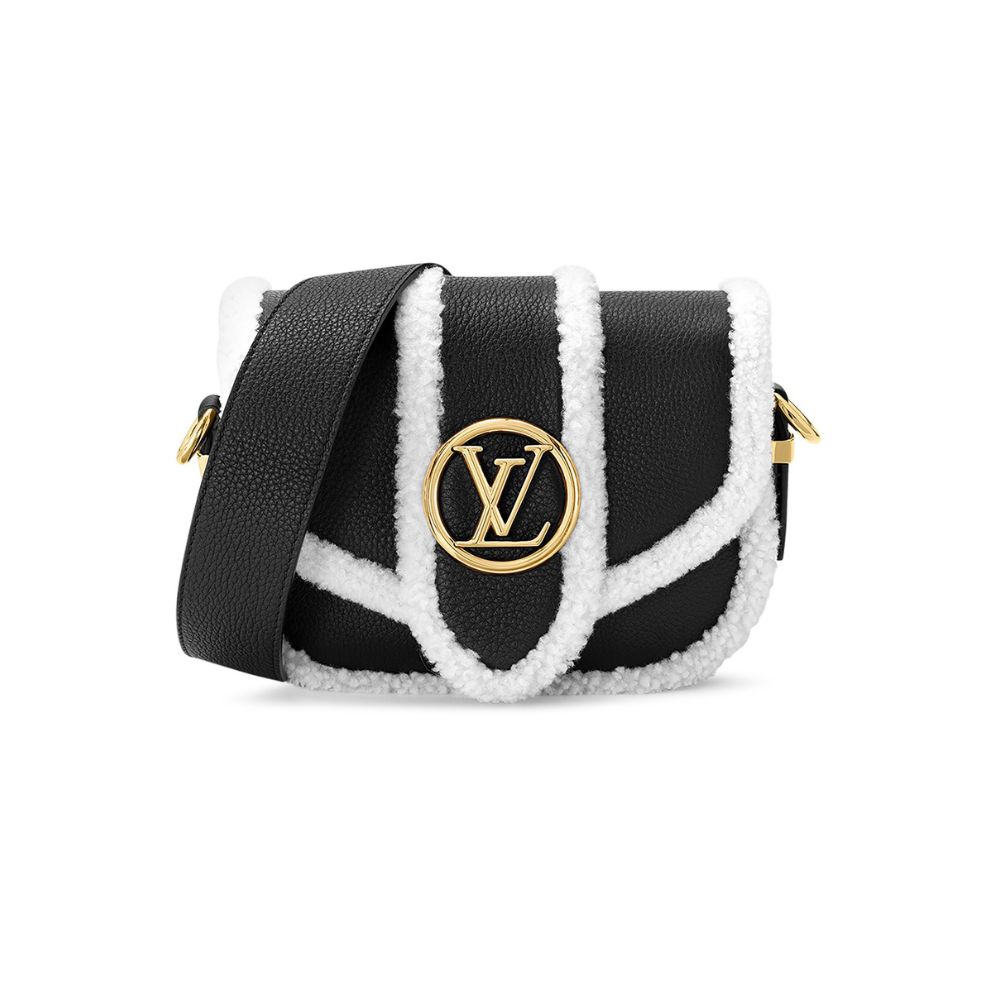 グレイン カーフ レザーとシアリングで作られた LV ポン 9 ソフト PM ハンドバッグ。