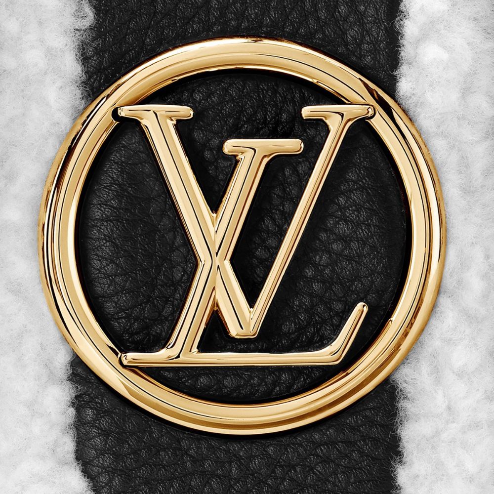 ソフトでキュートな雰囲気を醸し出しています。幅広のレザーストラップがスポーティでシックな雰囲気を加え、ブラック レザーとホワイト シアリングのコントラストに大胆なゴールドカラーの LV サークル シグネチャーが華やかにあしらわれています。