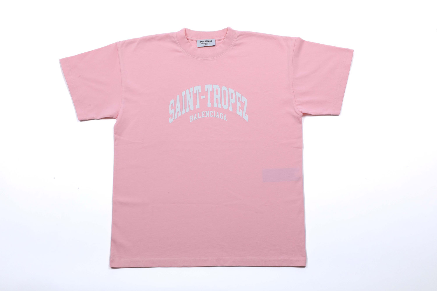 胸元には大きいアーチ状のSAINT-TROPEZ文字プリント、その下にはBALENCIAGA文字プリント入りとなっております。