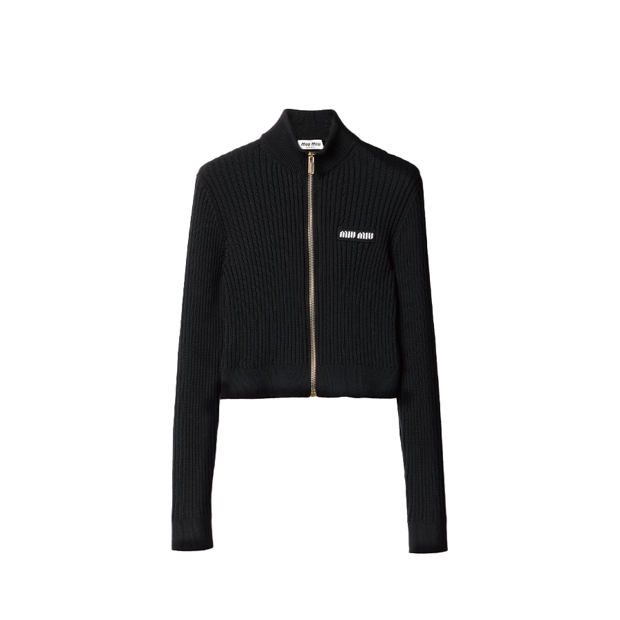 MIUMIU ミュウミュウ ロゴディテール ジップアップ ニットカーディガン
