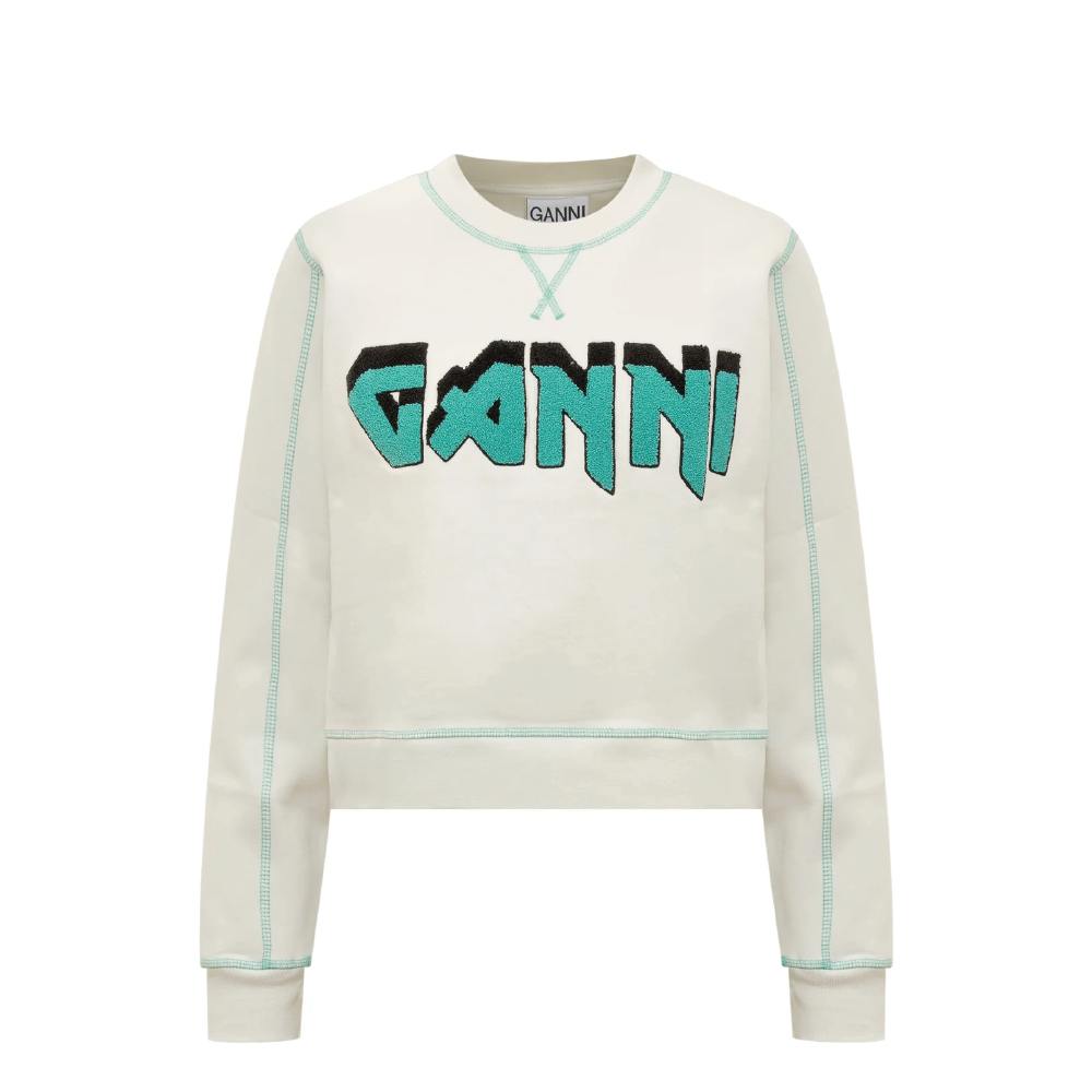 GANNI ガニー Isoli rock ロゴ刺繍 クルーネック スウェットシャツ