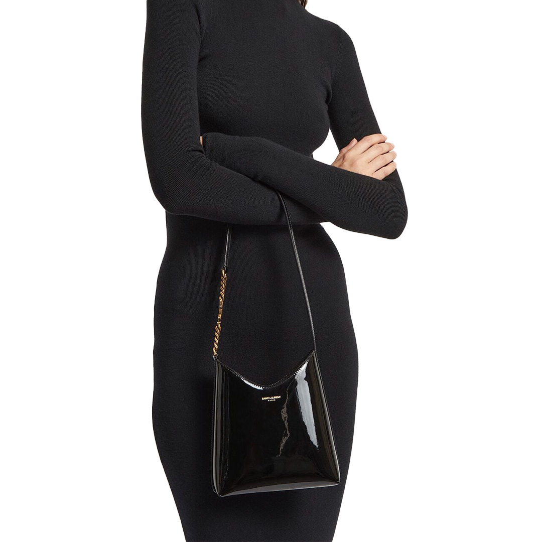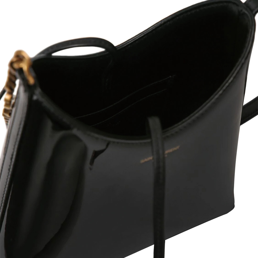 YSLモノグラムチェーンディティール付きレザーショルダーストラップが特徴です。