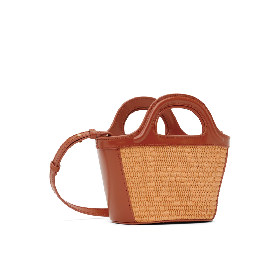 ラフィア素材を使用した涼し気な印象のMARNIトロピカリアマイクロトートバッグ。