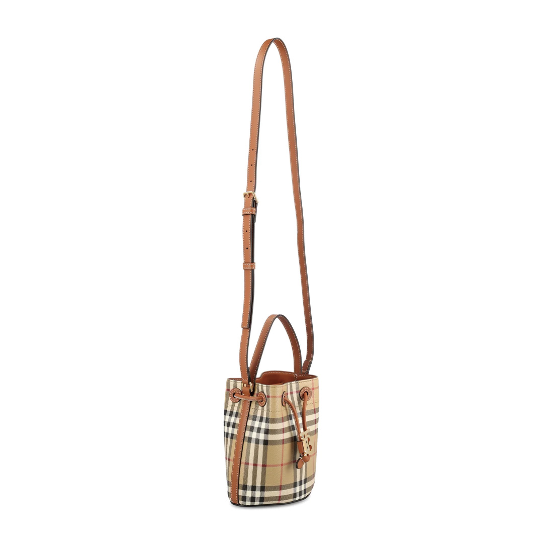 • BURBERRY バーバリー ロゴプレート チェック柄 ドローストリング バケットバッグ