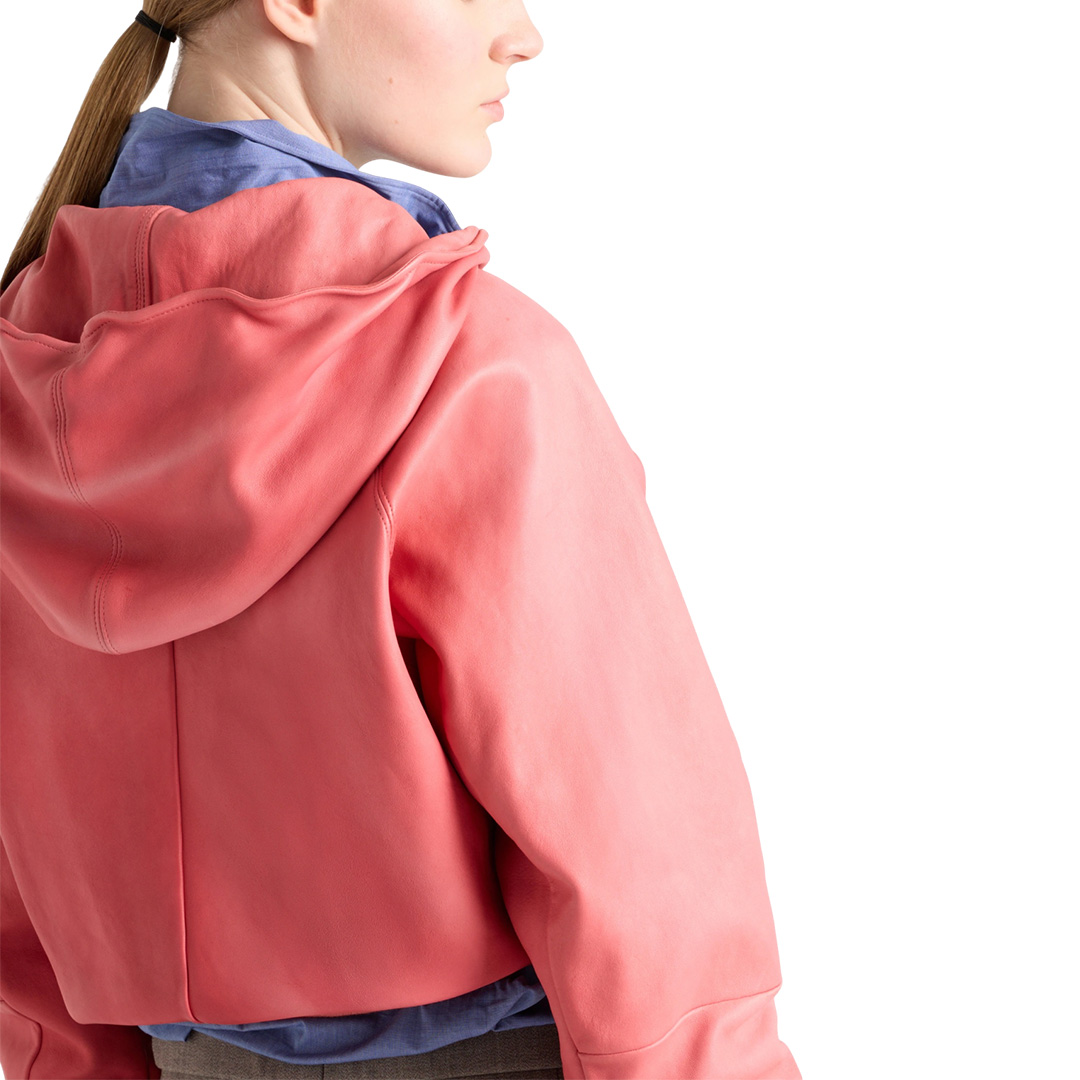 革新的な素材の使い方から生まれたこのパーカーは、職人の技とスポーティなスタイルが融合したハイブリッドなデザインです。ナッパレザーは、時間とともに色あせたように見えるヴィンテージ加工が施されており、デザインに奥行きを与え、カジュアルウェアとして着用していただけます。