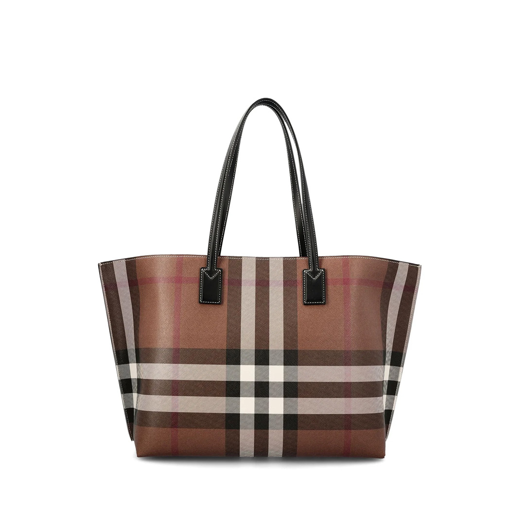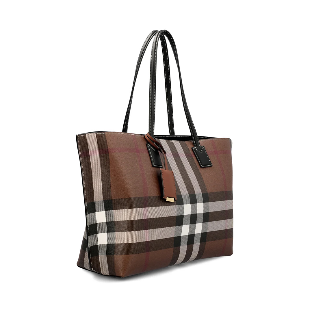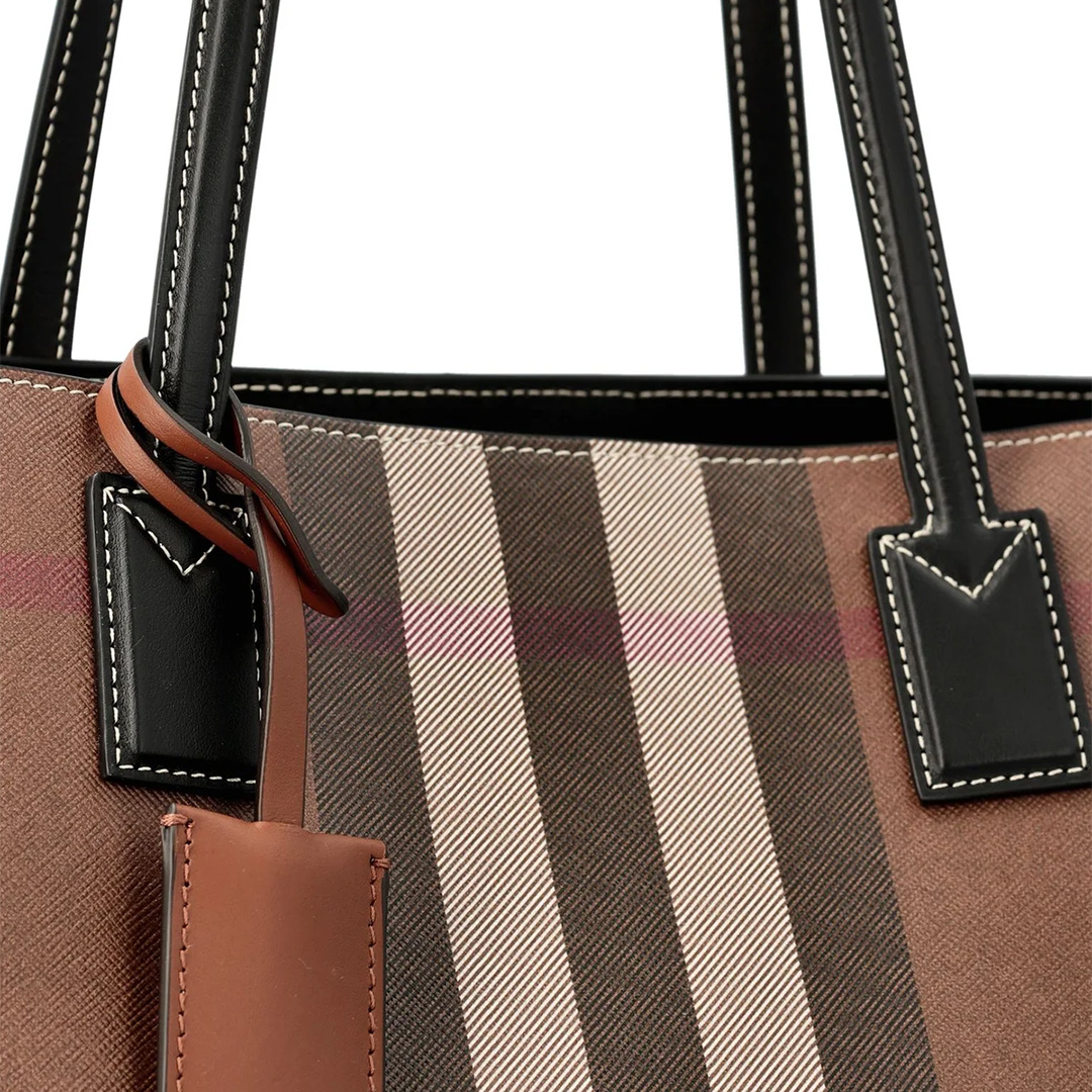 バーバリーのアイコニックなチェック柄が、上品で洗練された印象を与えるトートバッグです。