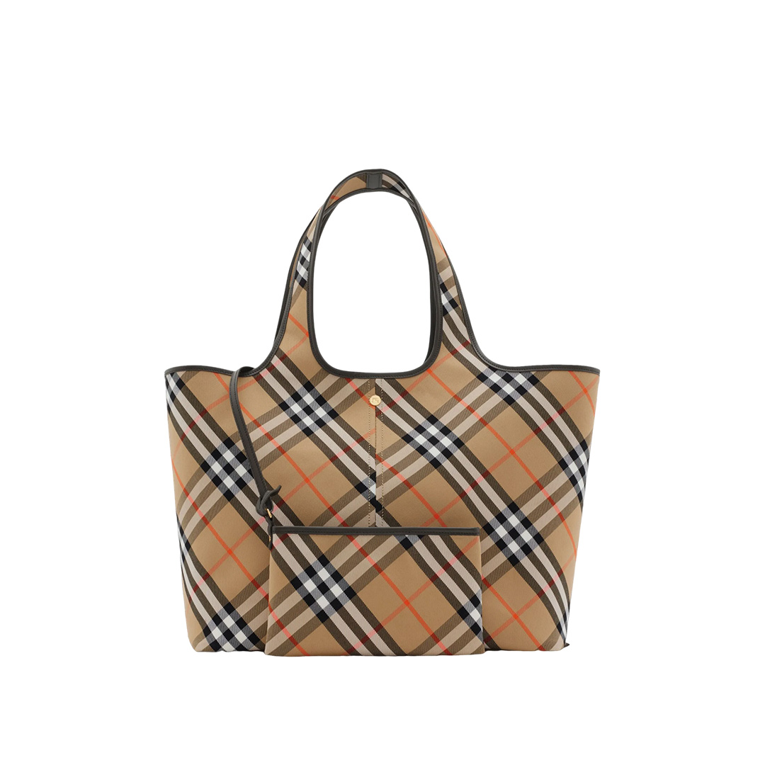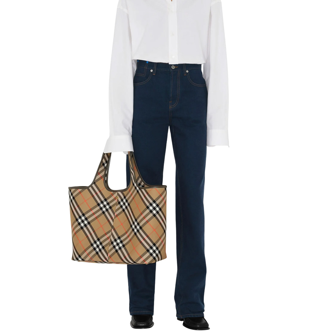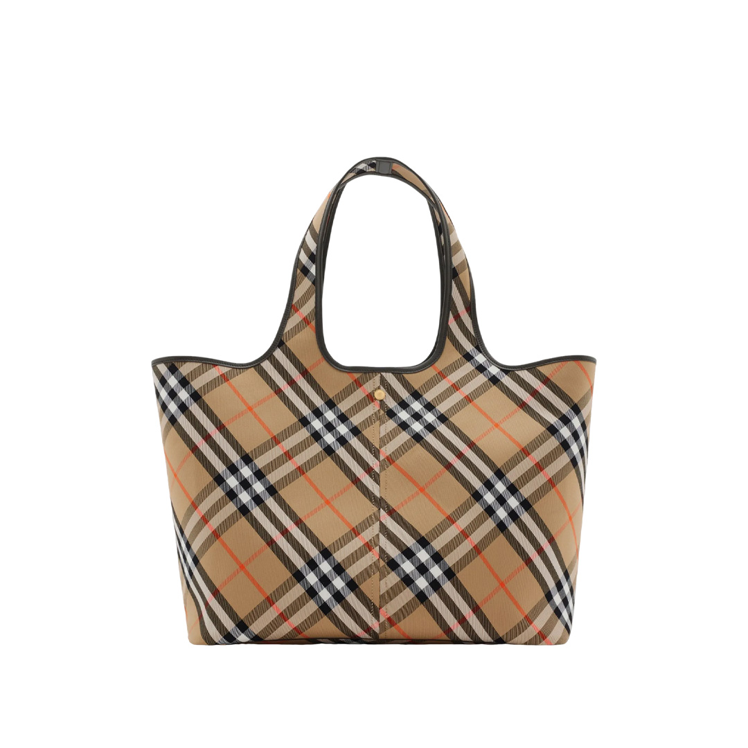 タータンチェック柄が目を引くトートバッグです。