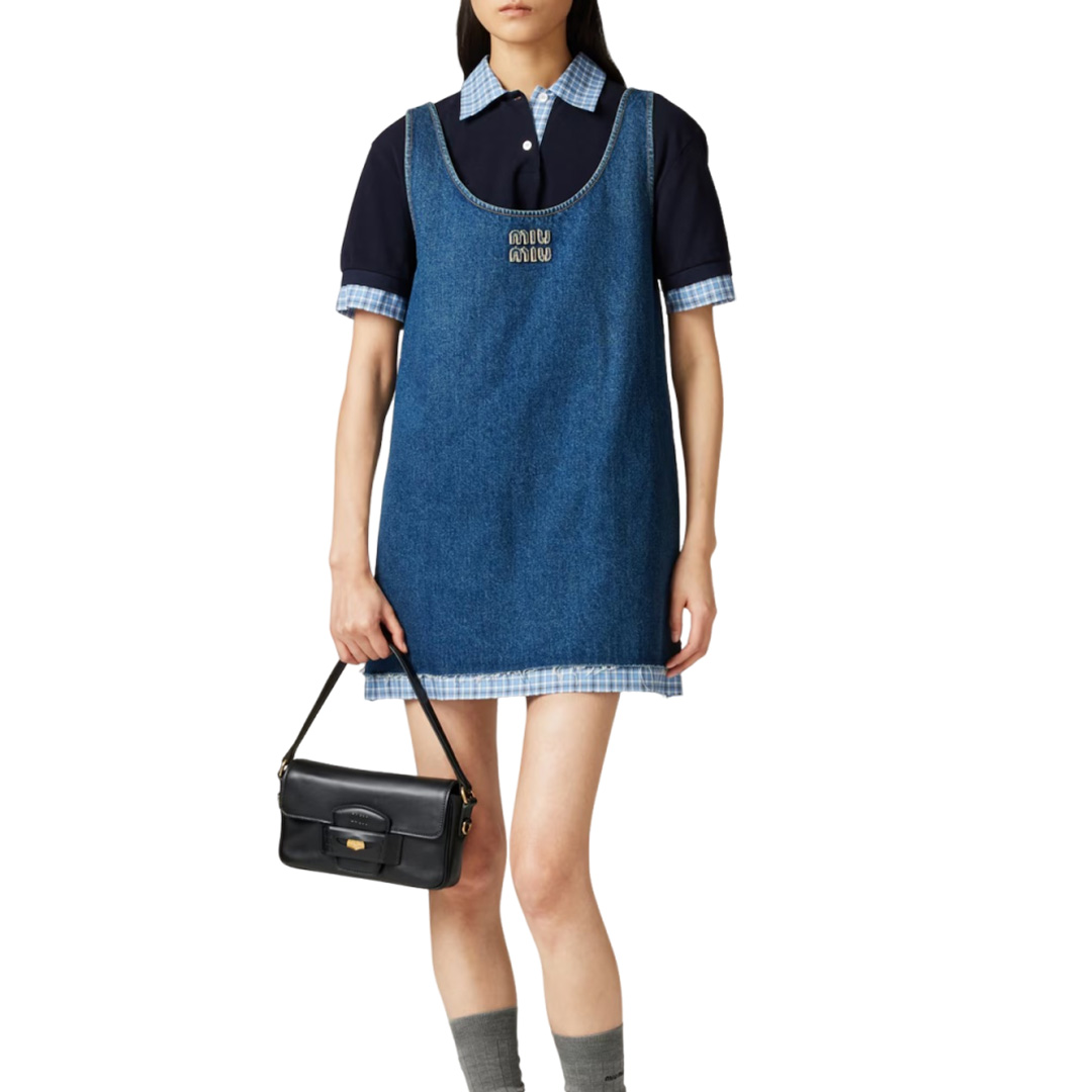 胸元のロゴと裾のチェック柄が、Miu Miuらしい遊び心をプラスします。