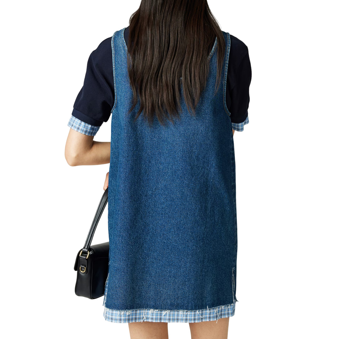 カジュアルなデニム素材ながらも、洗練されたシルエットが魅力的なミニドレス。