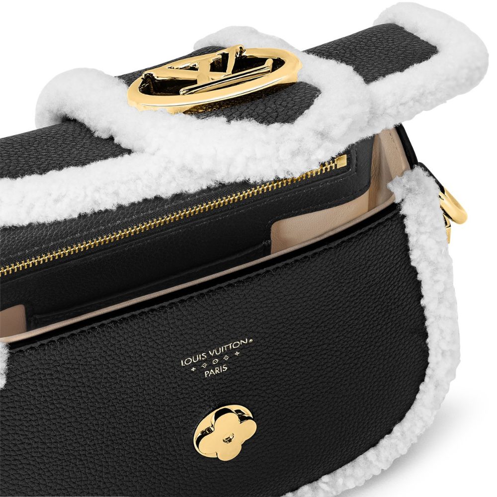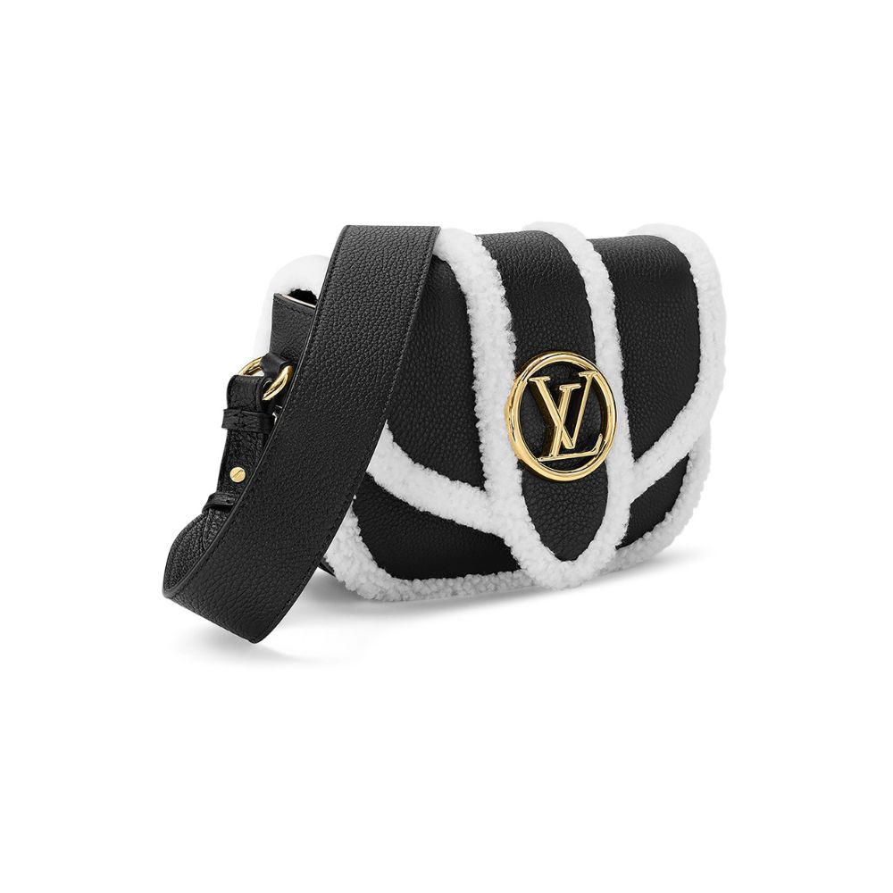 グレイン カーフ レザーとシアリングで作られた LV ポン 9 ソフト PM ハンドバッグ。