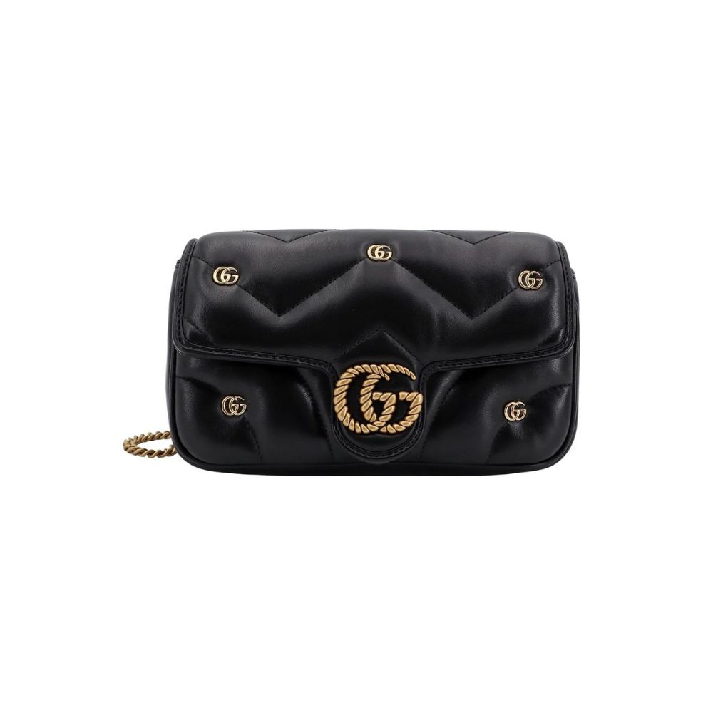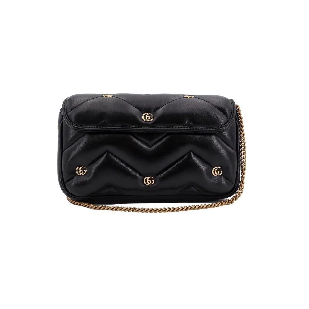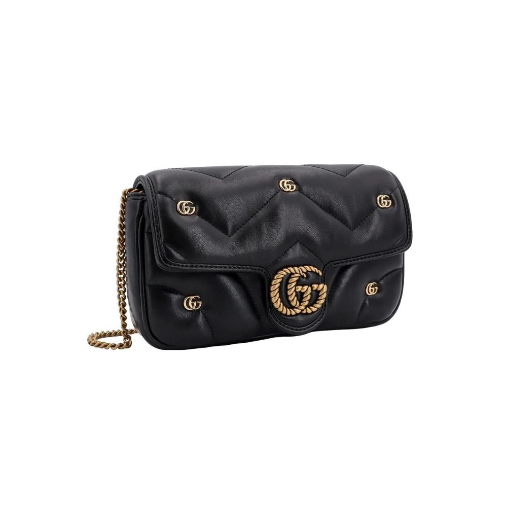 【GUCCI】ソフトなブラックキルティングレザーで仕立てたGGマーモントラインのミニバッグ。